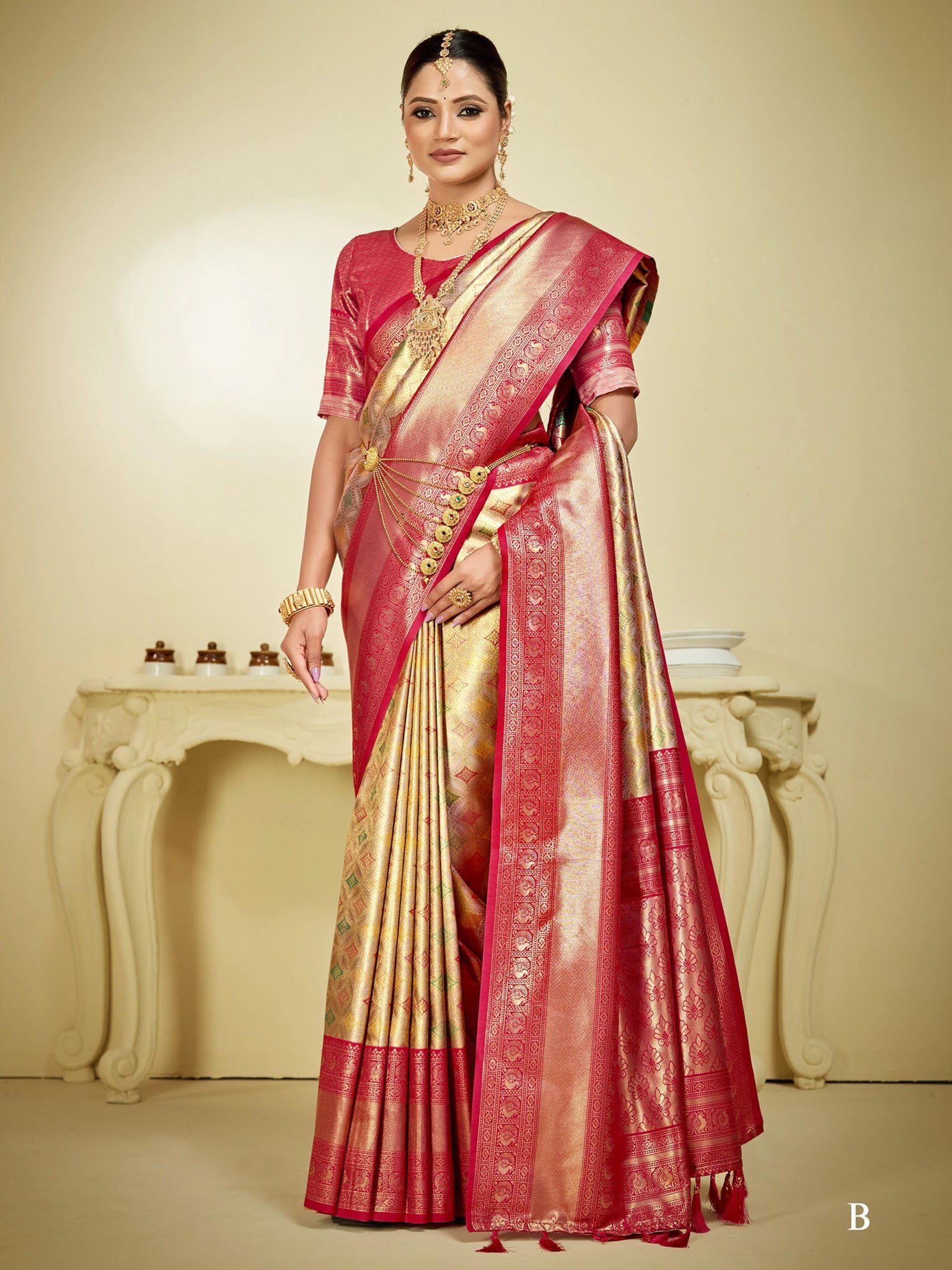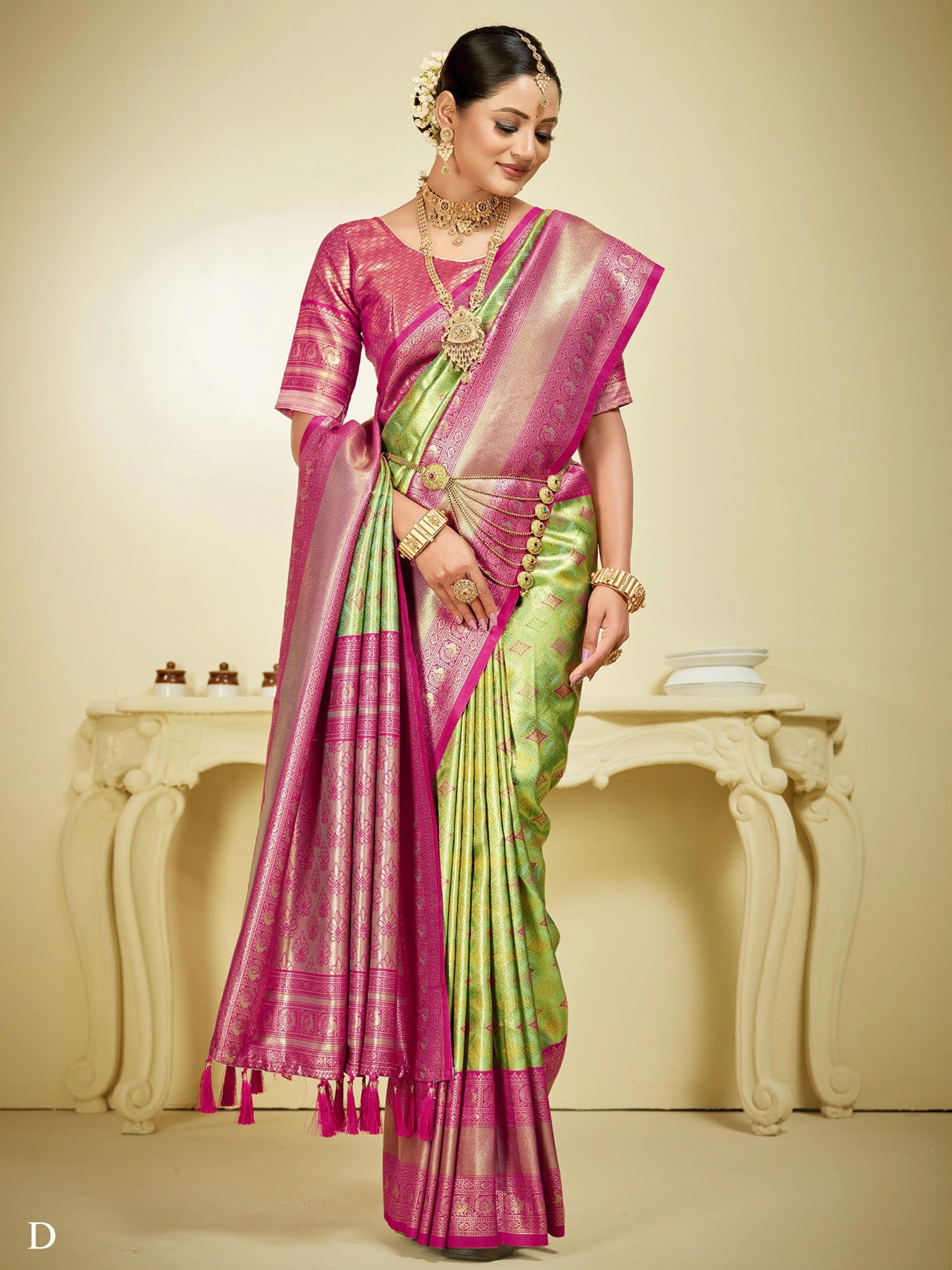 | Fabric | Kanjeevaram Silk, Kanjeevaram Silk, Kanjeevaram Silk, Kanjeevaram Silk, Kanjeevaram Silk, Kanjeevaram Silk |