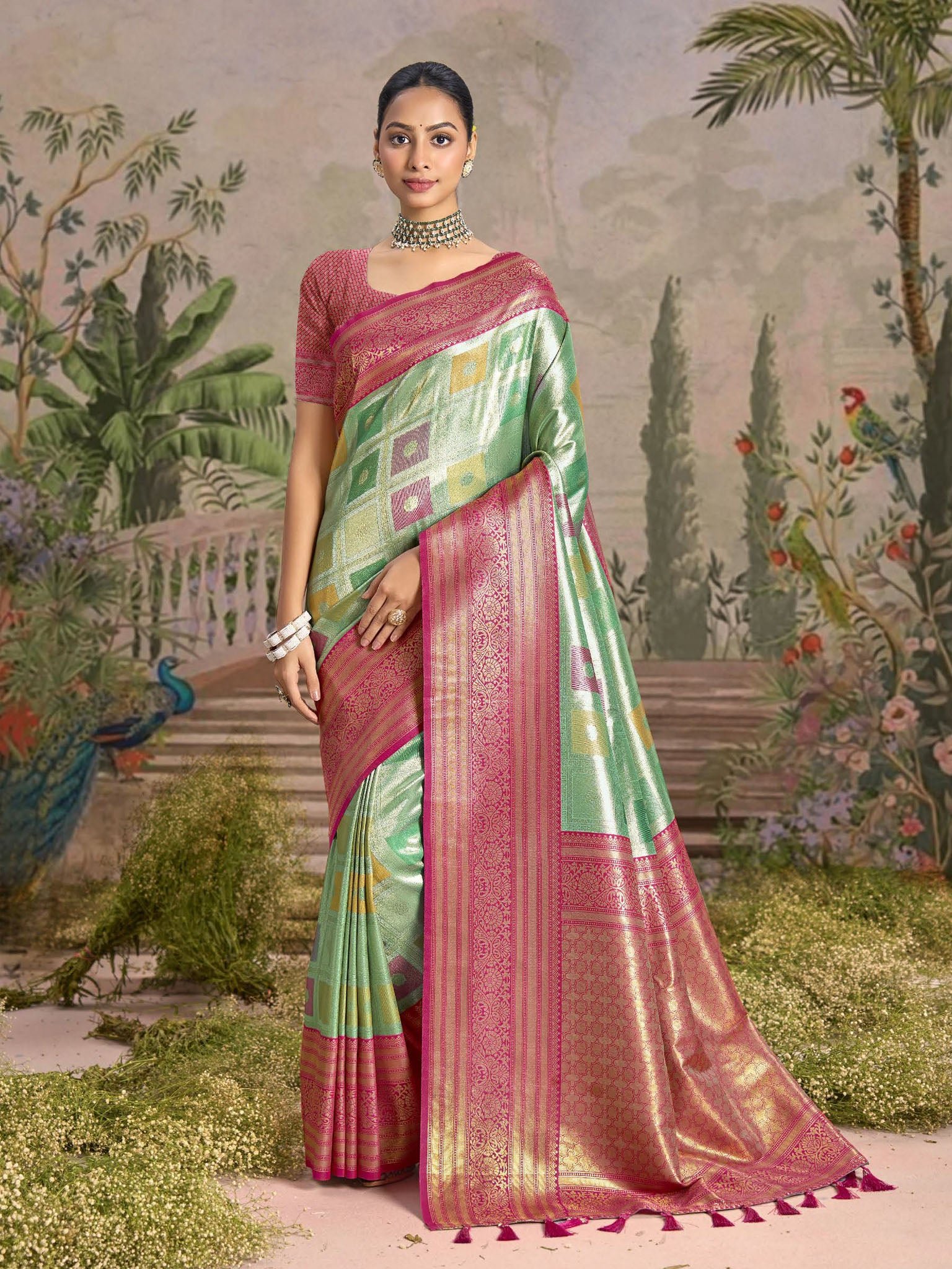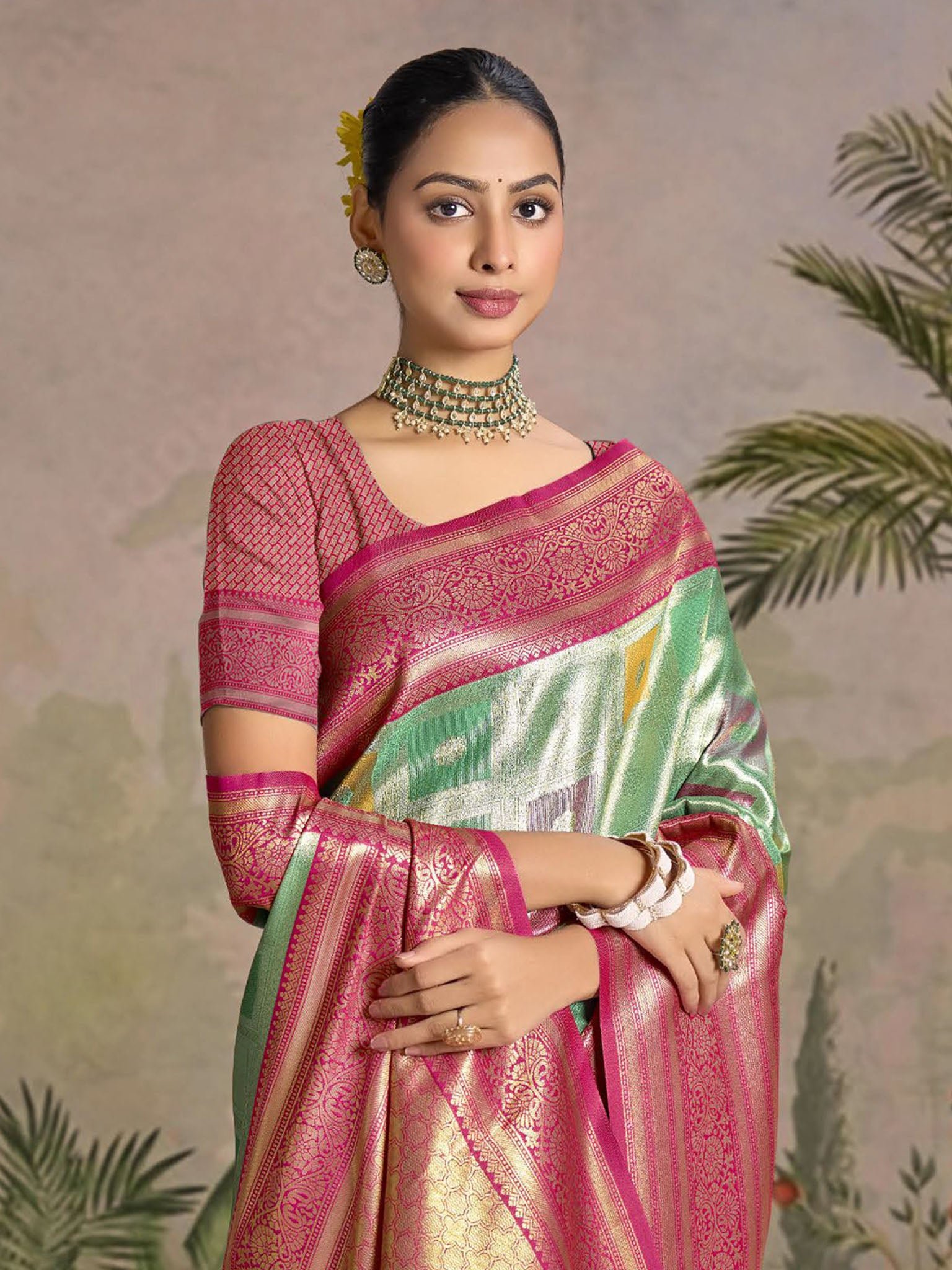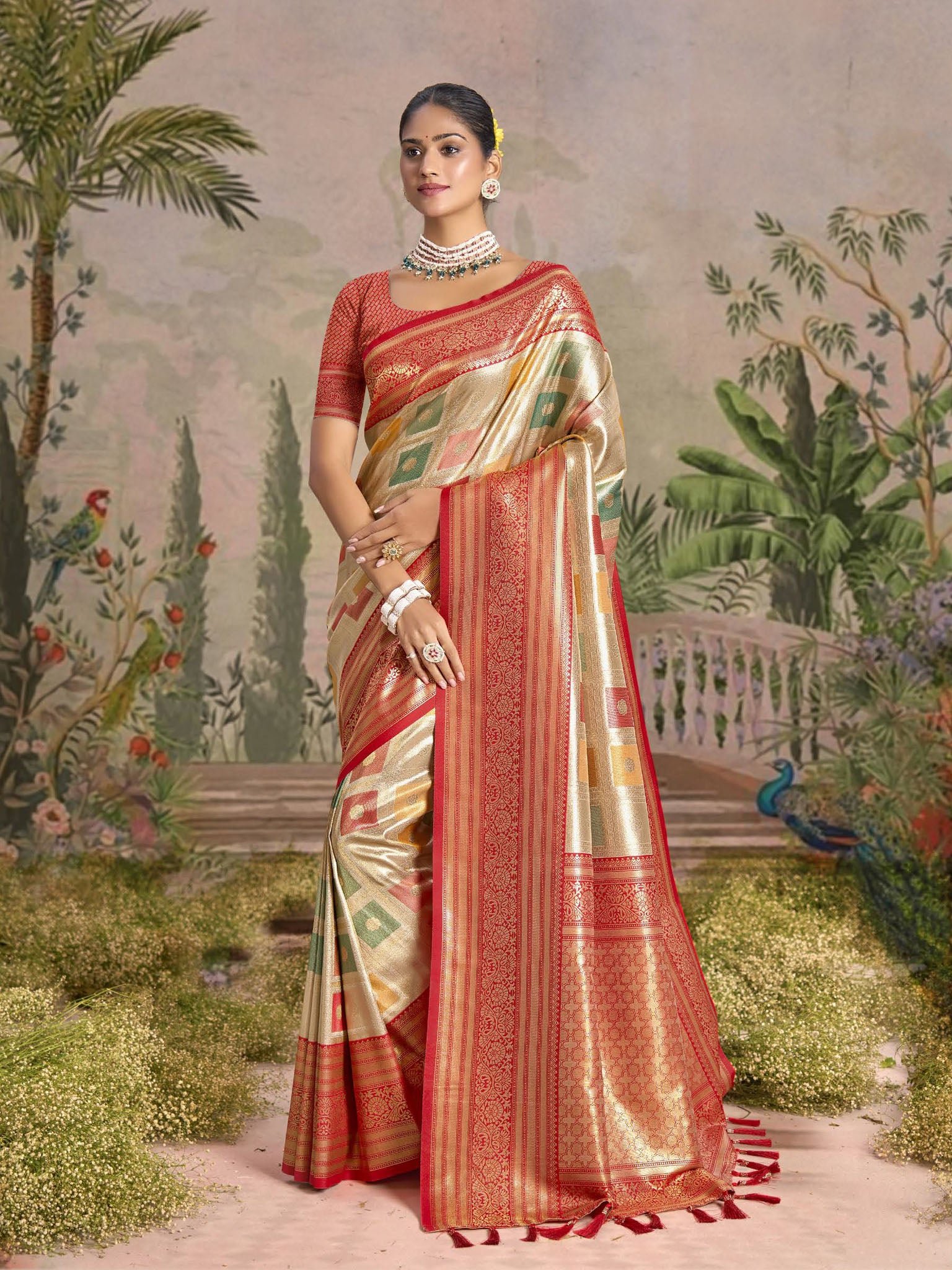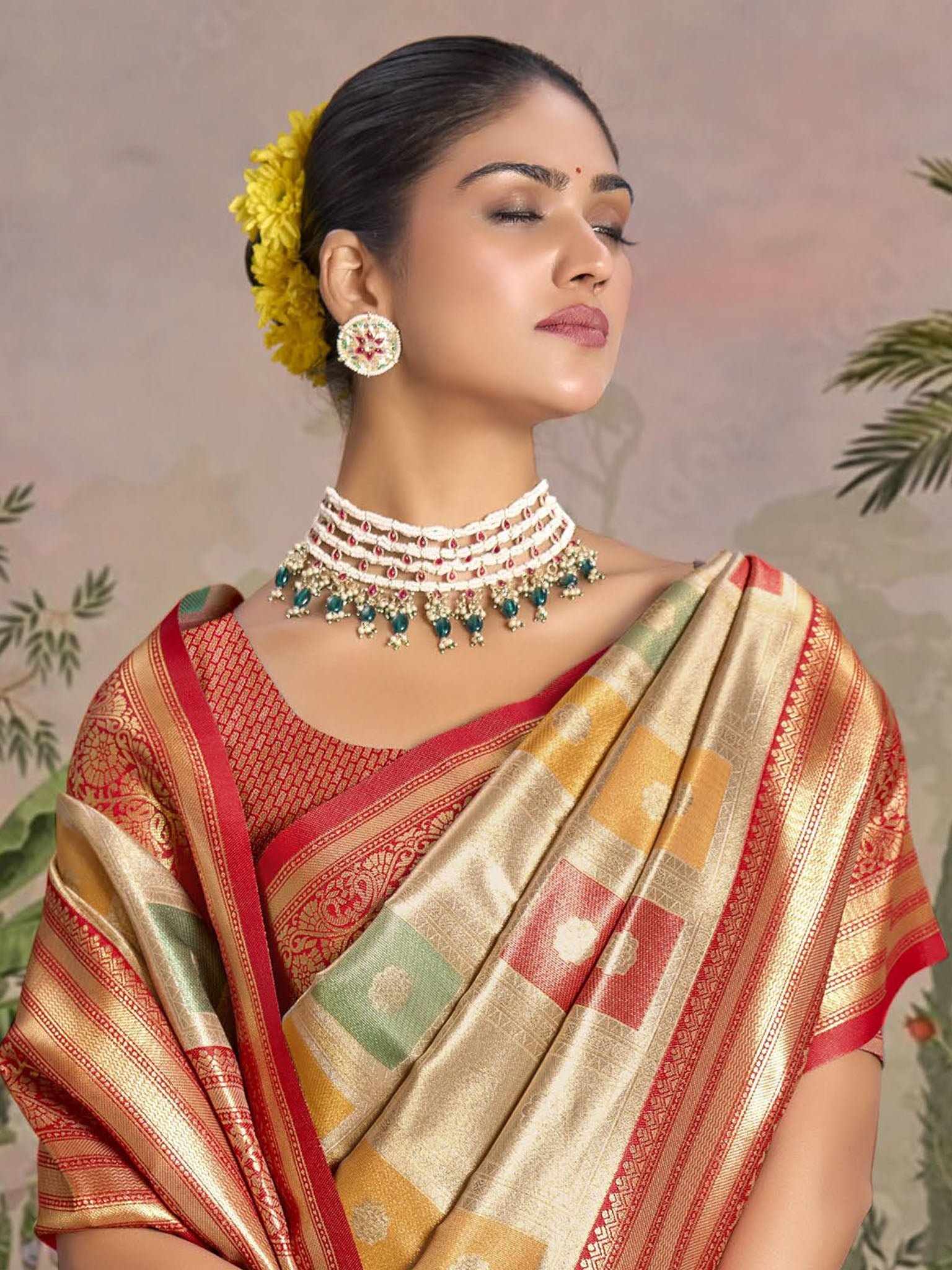 - Handloom Weaving: Skilled artisans use traditional handlooms to weave the saree, a process that requires immense patience and skill.